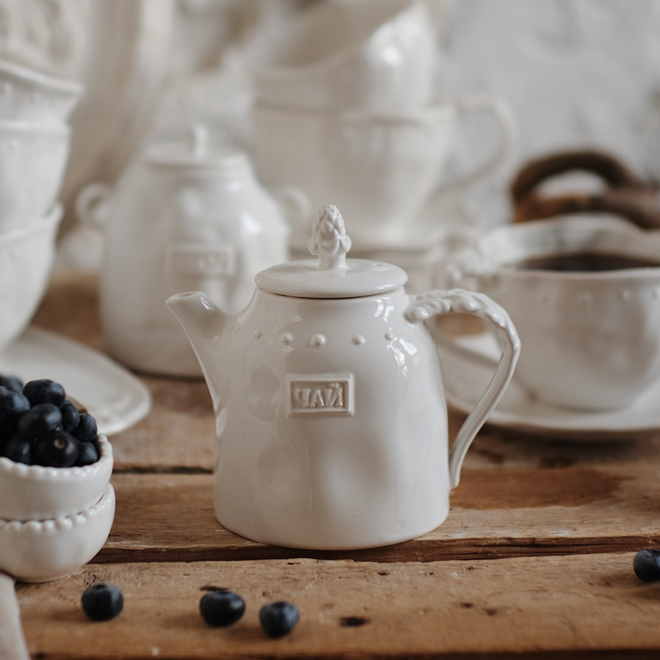 Главная Посуда Чайник заворочный "Жемчуг Винтаж" с надписью чай