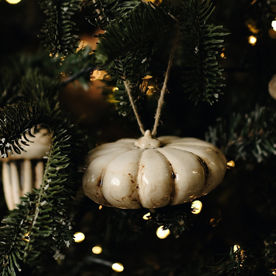 Елочная игрушка ручной работы в виде лука из полуфрафора, высота 6см, внутри пустая, бежевая