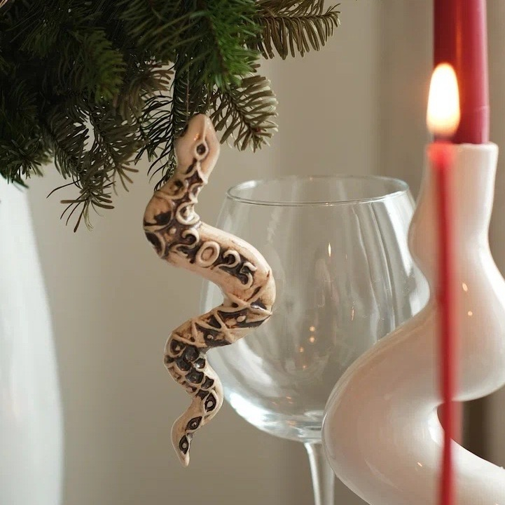 Главная Декор Елочная игрушка "Символ года 2025 Змея" с патиной