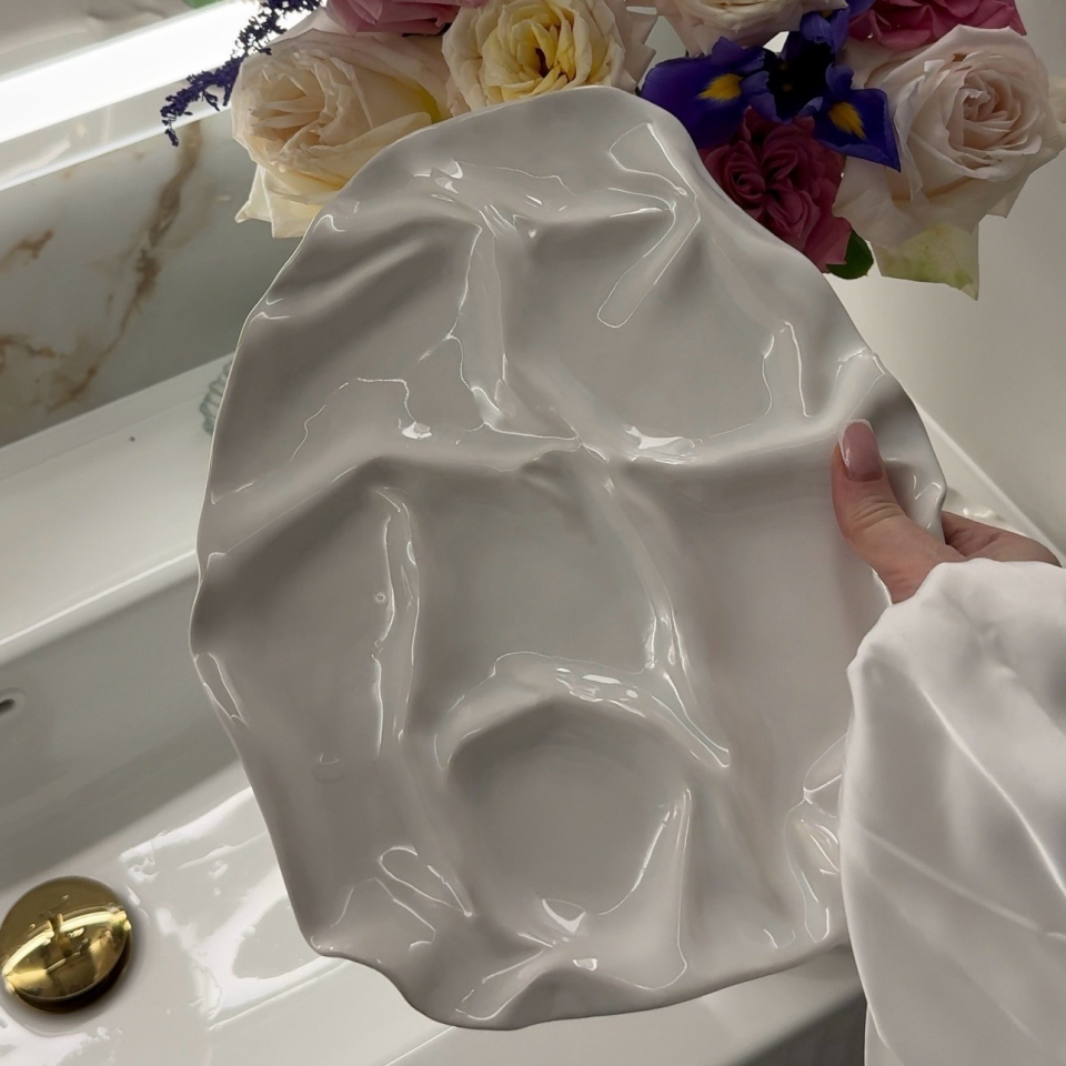 Главная Посуда Менажница в виде смятой ткани ручной работы