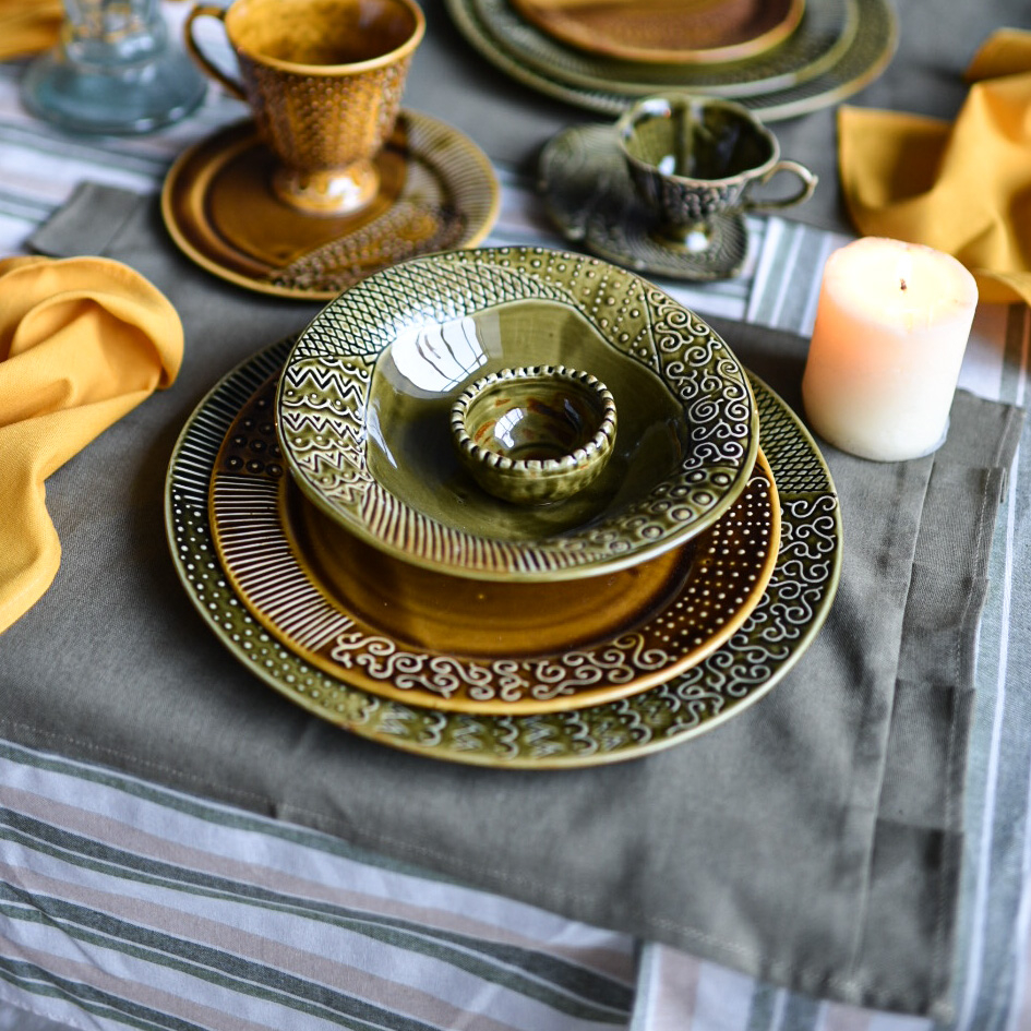 Вся наша посуда проходит высокотемпературный обжиг, поэтому ее смело можно использовать в быту, ставить в посудомойку или СВЧ.