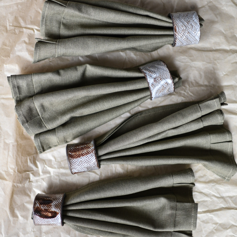 Набор салфеток для сервировки с декоративным кантом. 4 штуки. Цвет: оливковый. Размер: 35*50см. Состав: 40% Лен, 43% Вискоза, 17% Хлопок