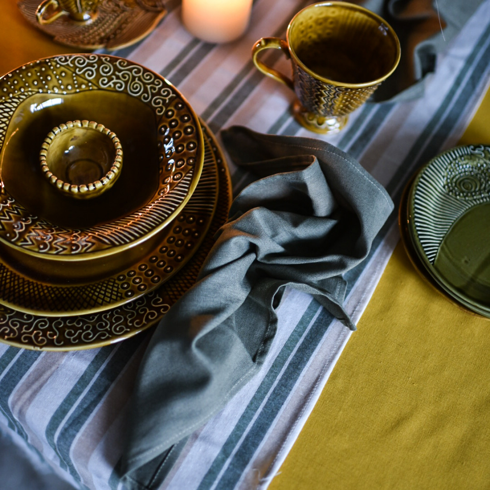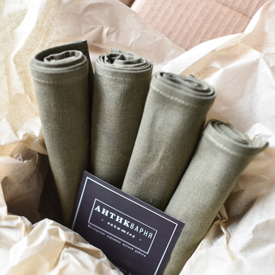 Набор салфеток для сервировки. 4 штуки. Цвет: оливковый. Размер: 35*45см. Состав: 40% Лен, 43% Вискоза, 17% Хлопок