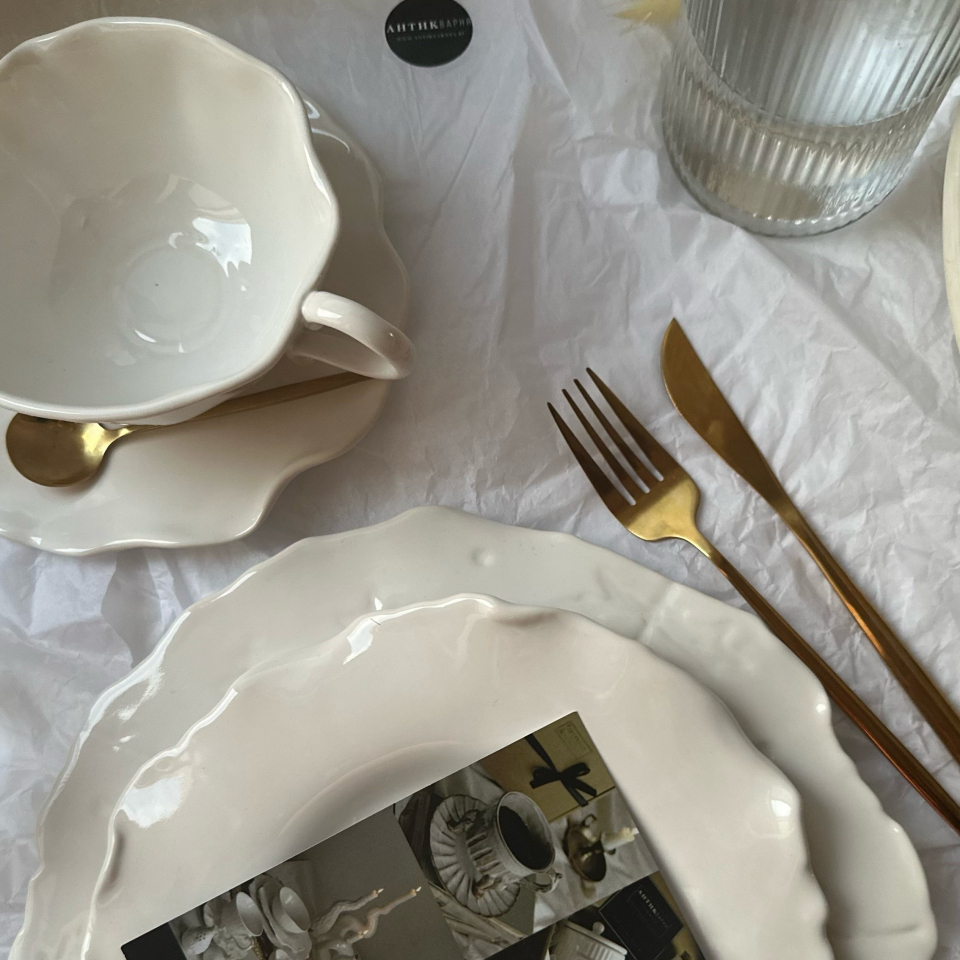 Подарочный набор из посуды ручной работы в фирменной подарочной упаковке. 4 предмета: тарелка 27см, тарелка 22см, блюдце 16см, кружка 350мл