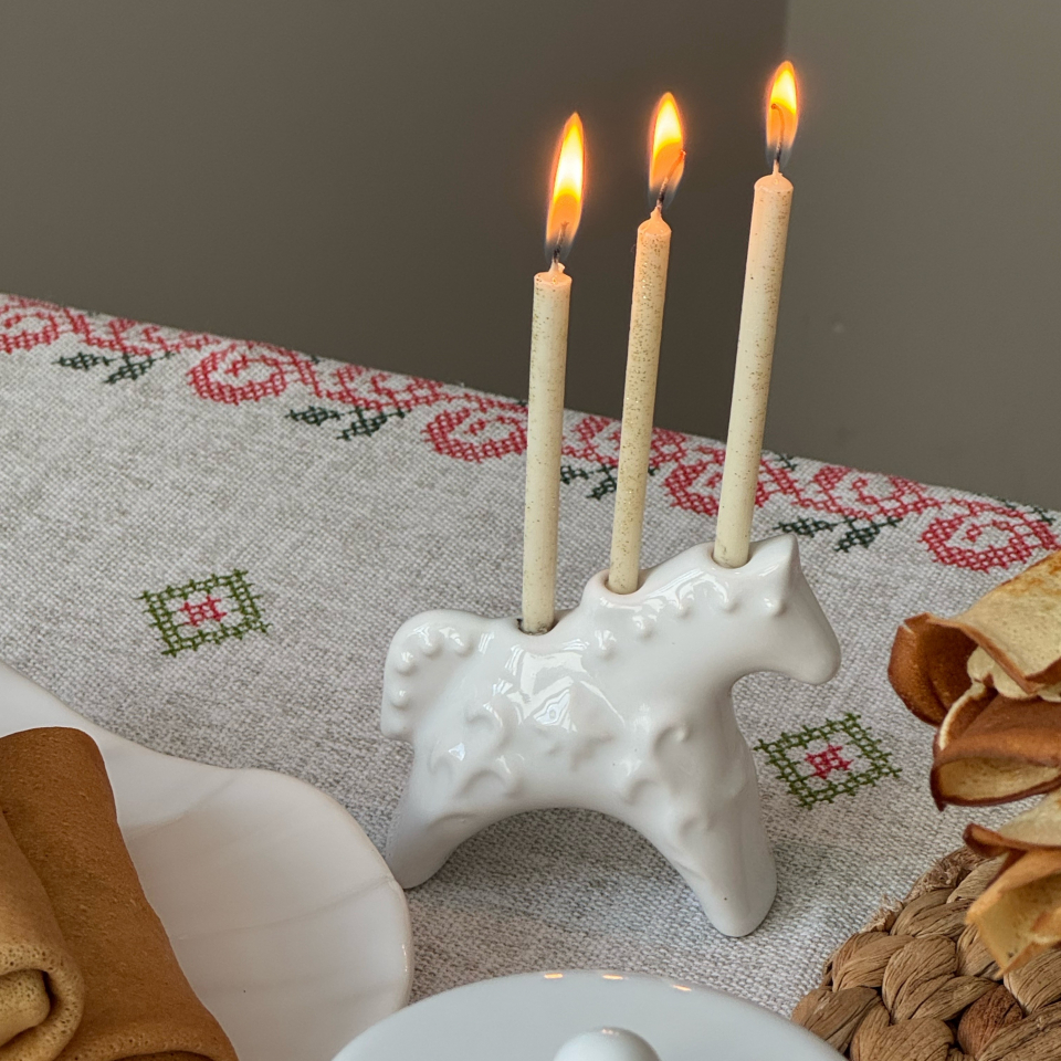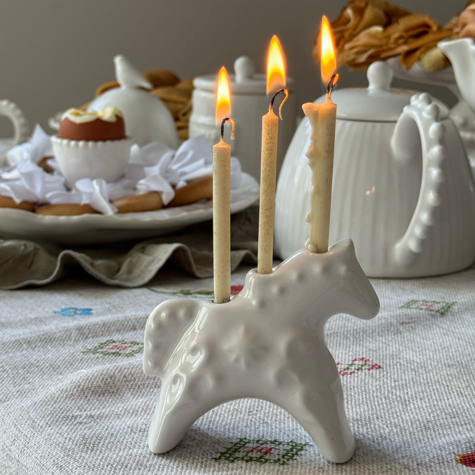 Подсвечник для 3 тонких свечи в форме статуэтки Лошади, белый