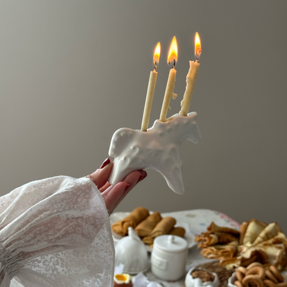 Подсвечник для тонкой церковной свечи, керамика ручной работы, мягкий фарфор, белая. Текстурная роспись. Высота 7,5см
