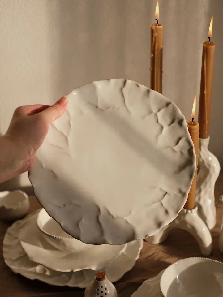 Главная Посуда Столовый сервиз с тарелками Жемчуг 2, подсвечниками и аксессуарами, 26 предметов