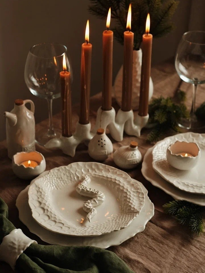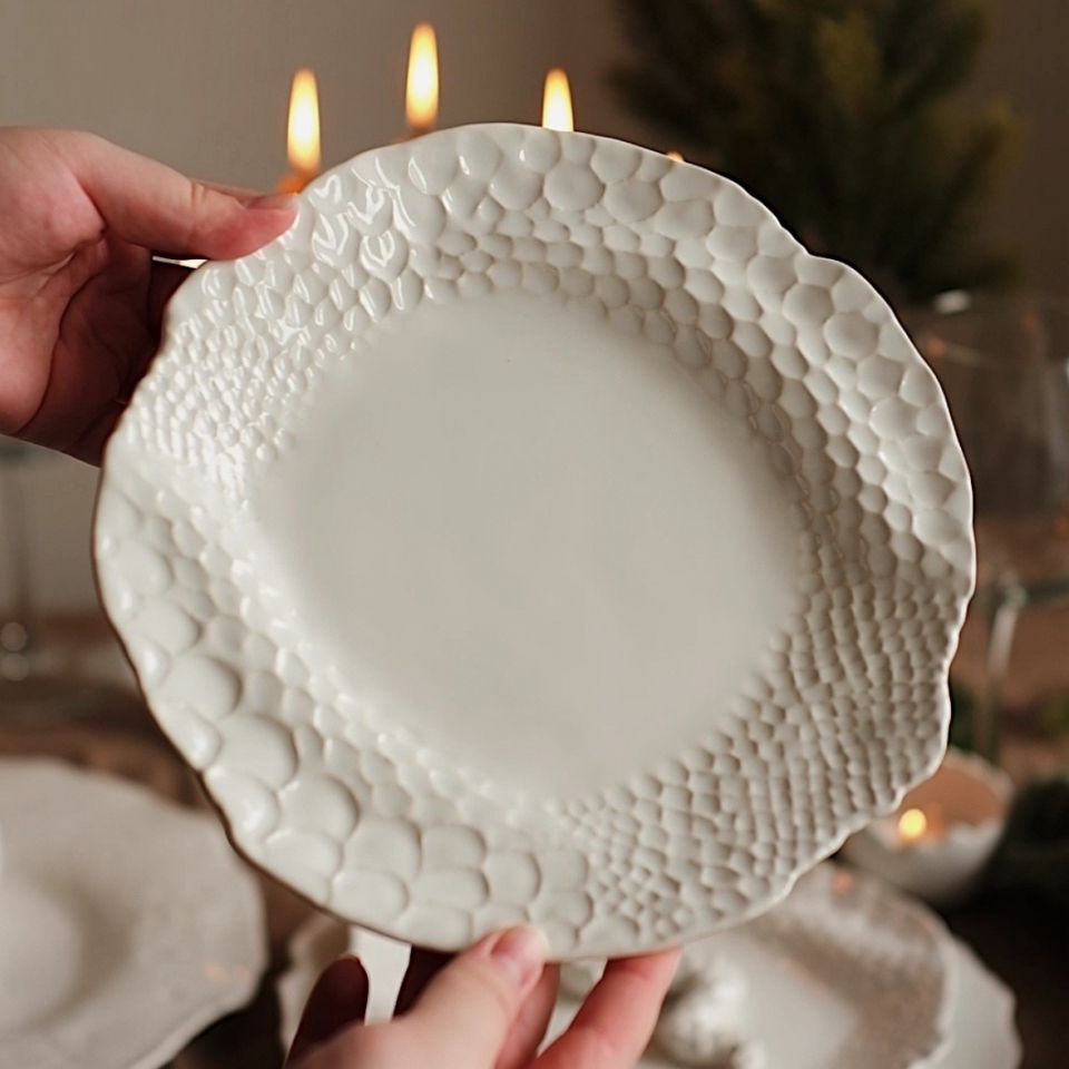 Тарелка ручной работы, блюдо с имитацией чешуи змеи, сивол года 2025, диаметр 23см, мягкий фарфор, белая, глянцевая. Можно мыть в посудомойке. Сочетается со всей коллекцией Белый Жемчуг