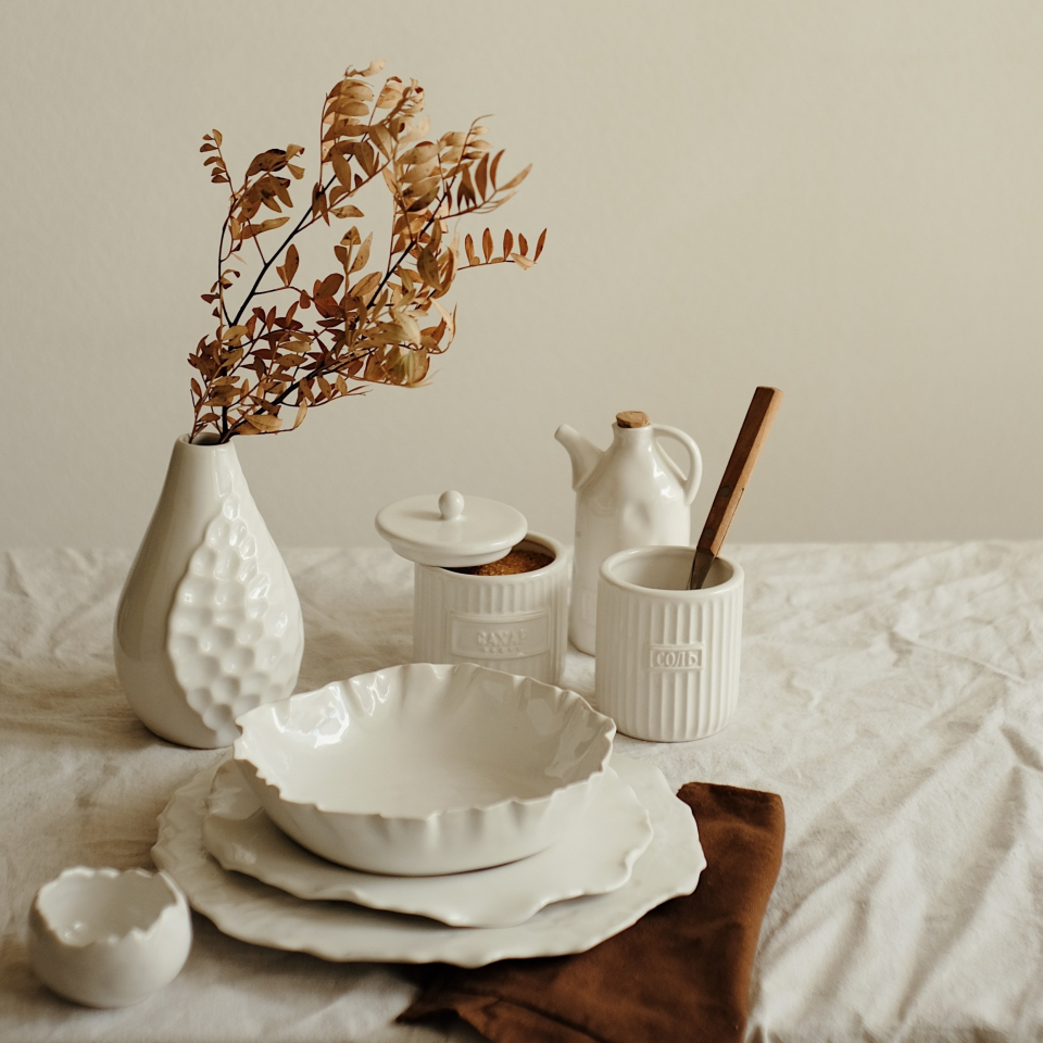 Вся наша посуда проходит высокотемпературный обжиг, поэтому ее смело можно использовать в быту, ставить в посудомойку или СВЧ.