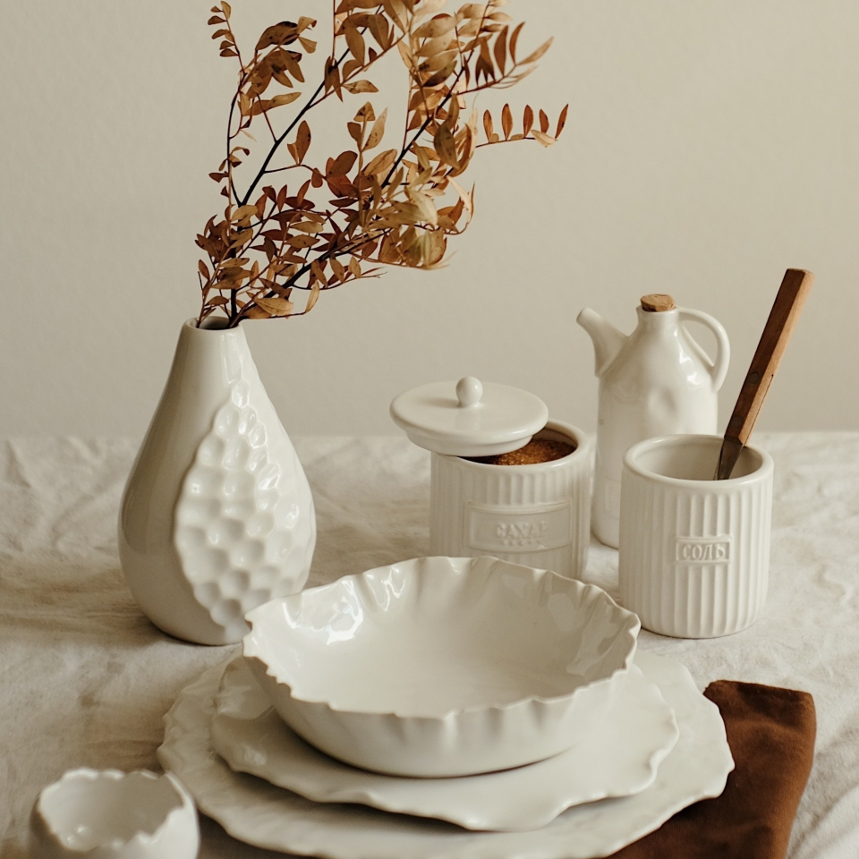 Вся наша посуда проходит высокотемпературный обжиг, поэтому ее смело можно использовать в быту, ставить в посудомойку или СВЧ.