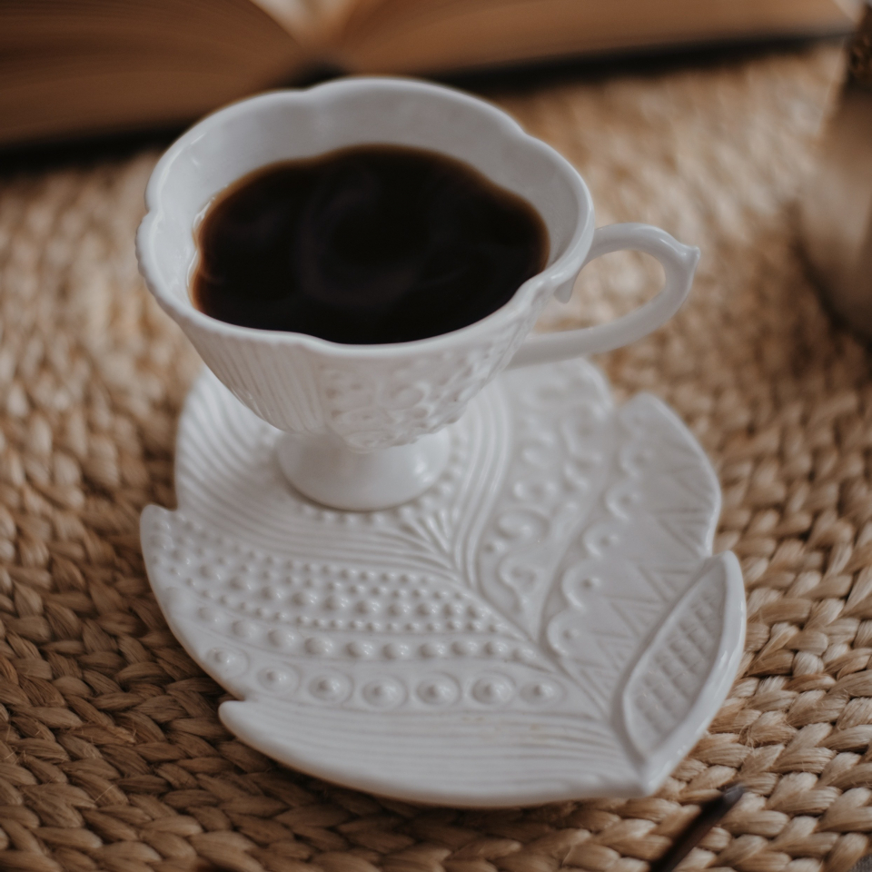 Блюдце в виде пера ручной работы, с рельефом в технике зенарт, белое сливочное полуматовое