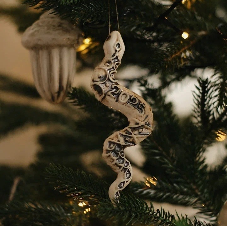 Елочная игрушка "Символ года 2025 Змея" с патиной