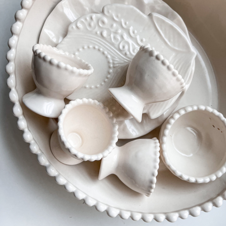 Набор из 4 подставок для яйца, белые, ручной работы (5*5см). Керамика. Можно мыть в посудомойке