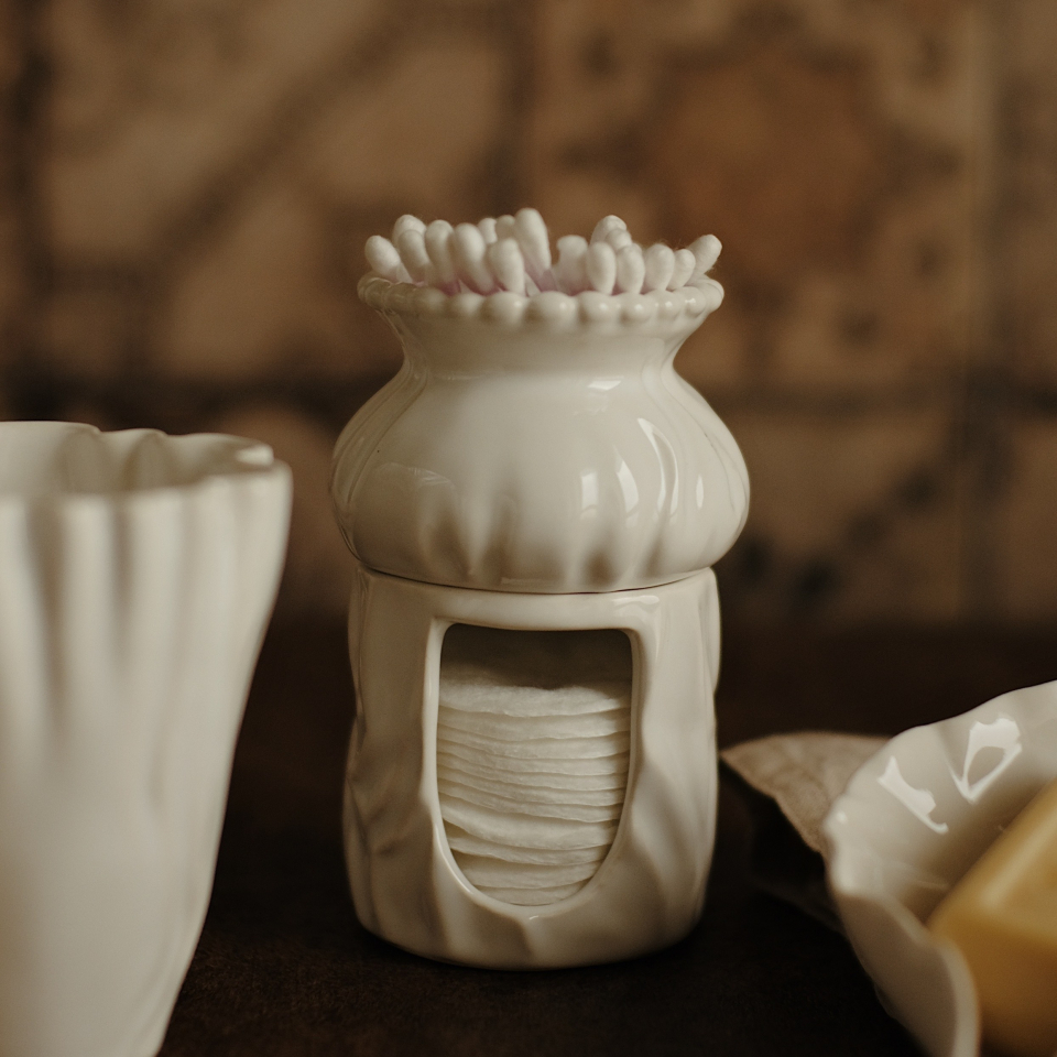 Главная Декор Органайзер для ватных палочек и дисков Белый Жемчуг
