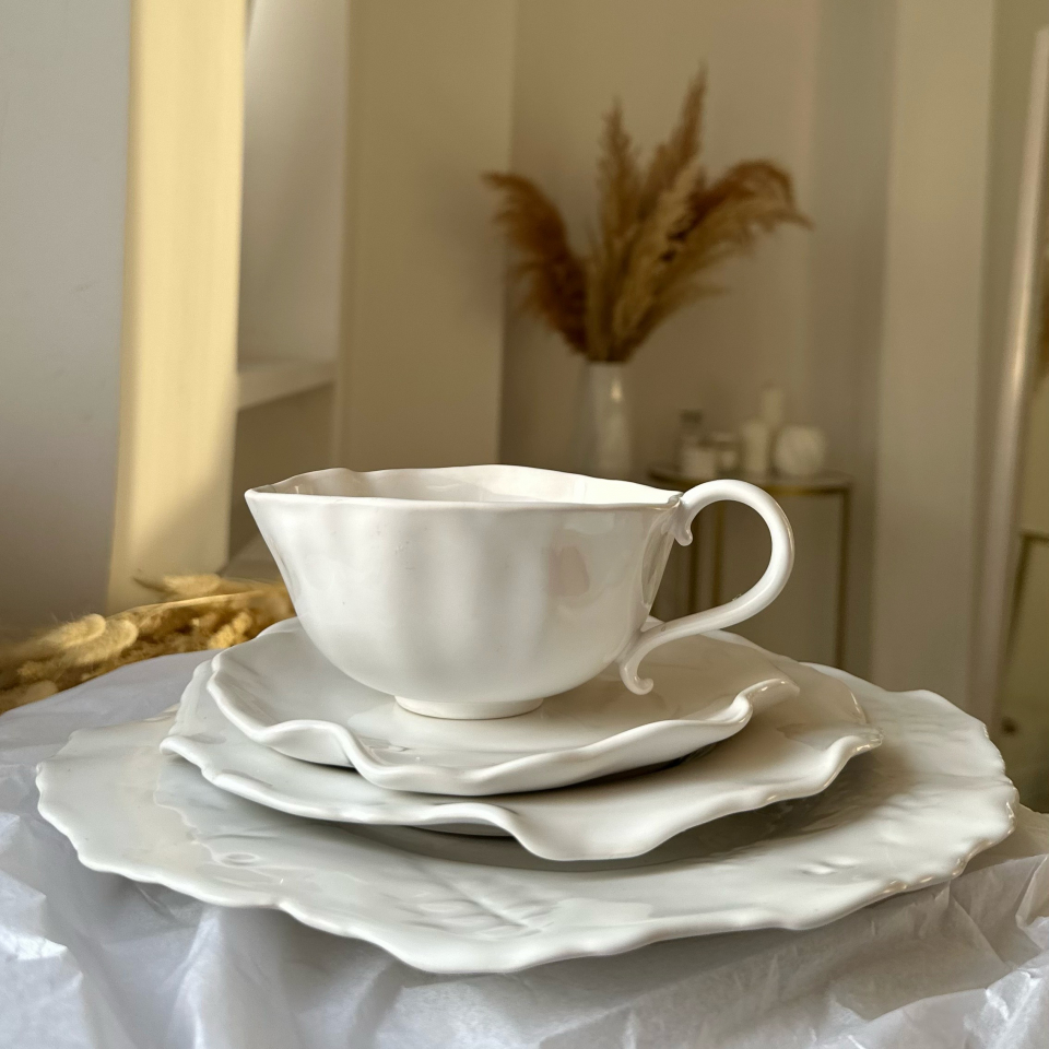Подарочный набор из посуды ручной работы в фирменной подарочной упаковке. 4 предмета: тарелка 27см, тарелка 22см, блюдце 16см, кружка 350мл