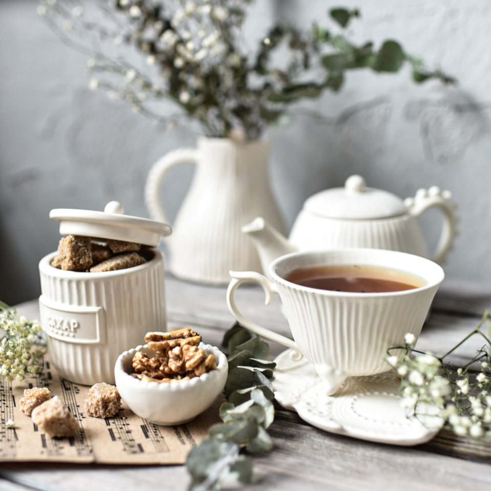 Сахарница с крышкой и надписью Сахар, текстурная, рифленая, белая, глянцевая, ручная работа.Высота 10см, с крышкой 11см, Диаметр:8,5см. Объем 300мл. Полуфарфор. Сахарница для сервировки чайного стола и для хранения