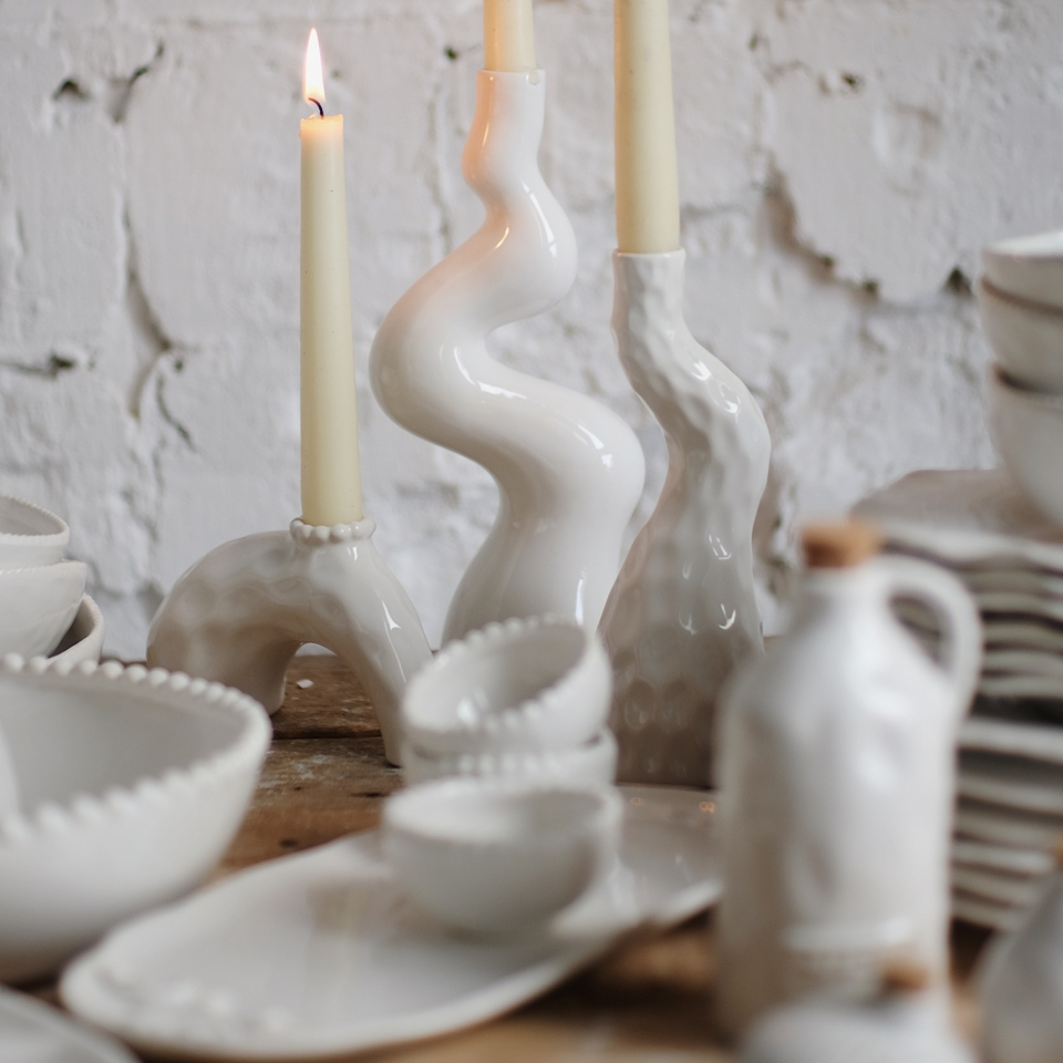 Столовый сервиз ручной работы "Жемчуг с подсвечниками и акссессуарами"
