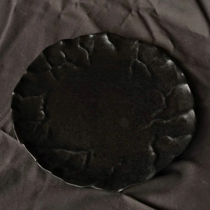 Тарелка ручной работы, диаметр 27см, мягкий фарфор, черная, матовая (сатиновая текстура). Можно мыть в посудомойке. Сочетается со всей коллекцией Белый Жемчуг