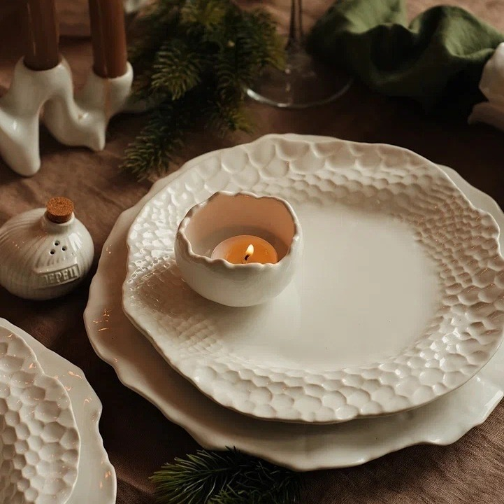 Тарелка ручной работы, блюдо с имитацией чешуи змеи, сивол года 2025, диаметр 23см, мягкий фарфор, белая, глянцевая. Можно мыть в посудомойке. Сочетается со всей коллекцией Белый Жемчуг